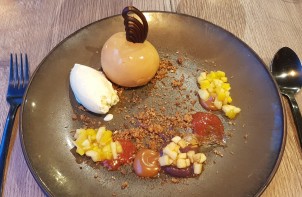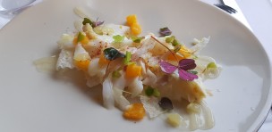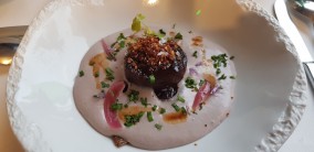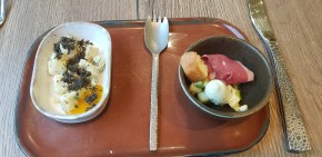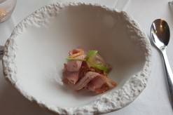 A little word for the welcome appetizer made of Jerusalem artichoke tartare and smoked duck breast with a fruity sauce.
