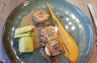 Afterwards, we come back to the Pyrenean lamb and the Landes poultry revisited with their surprising accompaniment of purees, candied vegetables, watercress pesto, ...