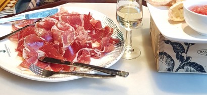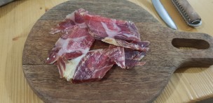 Ibaïama ham (which means ‘mother source’ in Basque - source AANA) is only made by using pigs from the Basque Country. They must be minimum 11 month old and reach 180 kg before slaughtering. And we tried a cured 18 month old ham.