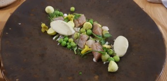 Mackerel with macadamia ice cream and spring peas