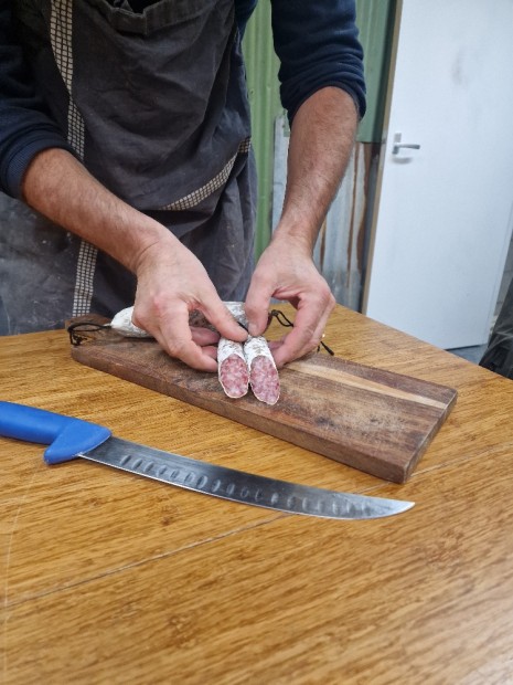 He dedicated years to studying master butchers up close, spending time in local workshops in Italy during his fashion business travels, observing traditional techniques, inherited recipes, ancestral curing methods, and refining his palate.