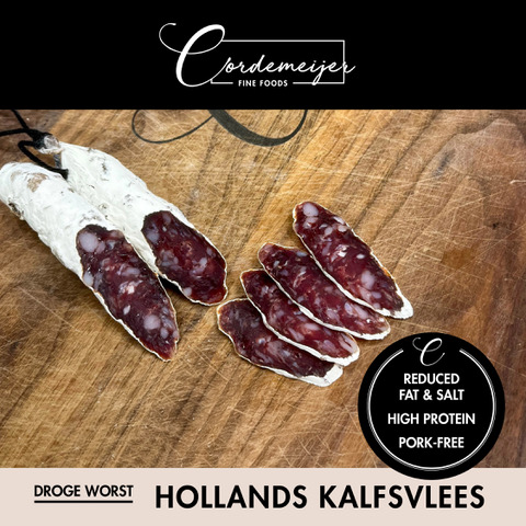 In its range of droge worsten (cured salamis) — such as Hollands Kalfsvlees (Dutch Veal), Hollands Weiderund (Dutch Pasture-Raised Beef) , and Wagyu Finca Santa Rosalía — the company applies: