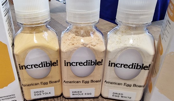 From the America Egg Board (United States), dehydrated and pasteurized eggs in consumer packaging for both sportsmen and gourmets at hall 2.