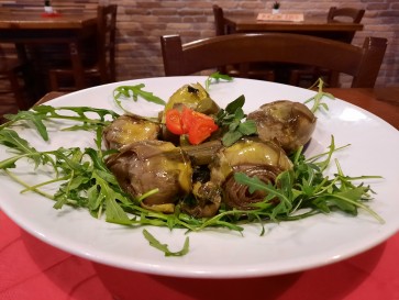 The preparation of this exquisite recipe is rather simple. Roman style artichokes are cooked in a stainless saucepan with high sides, close to one another, so that the leaves do not open during cooking.