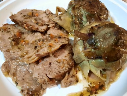 I am attaching photos of mamma's Roman-style artichokes with Casa Vercelli's royal roast.