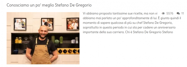 Currently Stefano De Gregorio is resident chef of the Saporie Lab in Milan, he is part of the team of the Compagnia degli Chef, organizes cooking classes, workshops and participates in events throughout Italy."