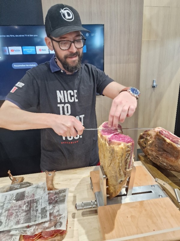 Discarlux is a Spanish company that has made the selection of meat and direct sales to restaurateurs in Europe via the web its mission. Here the "cortador y cecina".