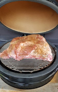 Rub the brisket with the rub and place it in the barbecue at 115 to 120°C for 3 hours. Close the lid, also known as the 'dome', during each of the three cooking phases. In this recipe it is important to have a low and constant heat.