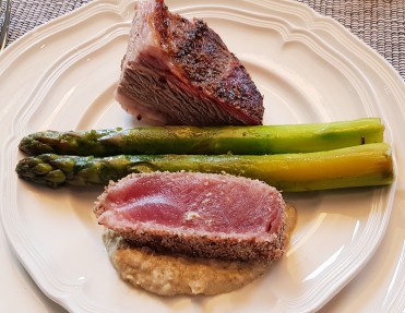 One of the combinations I love is to use the veal brisket in the "vitello tonnato" version with a slice of fresh cold smoked tuna, the "ancient way" tuna sauce and a couple of asparagus to garnish. Enjoy and see you in Bologna.
